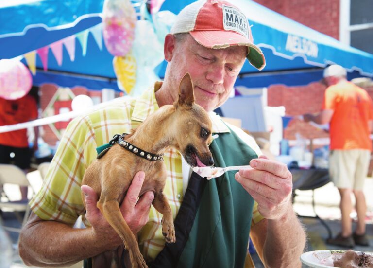 William Stahl of Holiday Island shares a frozen treat with his canine friend Santino during the 36th annual Berryville Ice Cream Social on June 11…