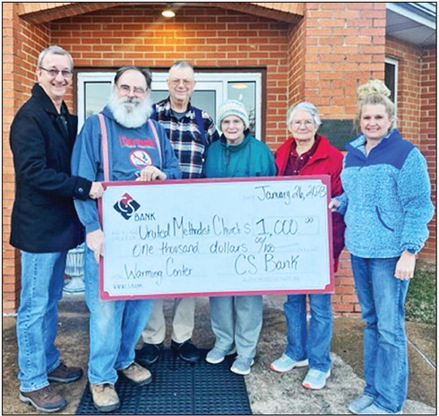 CS Bank recently donated $1,000 toward startup costs for a warming center at Berryville United Methodist Church. The center would provide overnight shelter for those in need when the temperatures is expected to drop to 15 degrees or lower. Submitted photo