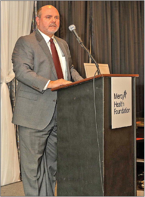 Darren Caldwell, the new administrator for Mercy Hospital Berryville, speaks at the 19th Annual Black & White Charity Ball on Saturday, Feb. 11, at the…