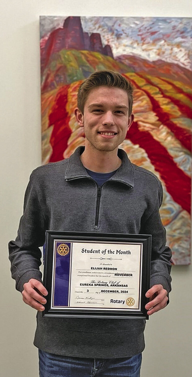 Home Features Student of the Month: Elijah Redmon Student of the Month: Elijah RedmonDecember 24, 2024Features Photo courtesy of Eureka Springs Rotary Club Elijah Redmon, a senior at Eureka Springs High School, has been named the Eureka Springs Rotary Student of the Month. Elijah is the son of… Login to continue reading Login Sign up for complimentary access Sign Up Now Close Previous Post Old felony conviction prevents Welch from taking council seat Next Post Gilmore finds right job at right place as Green Forest superintendent