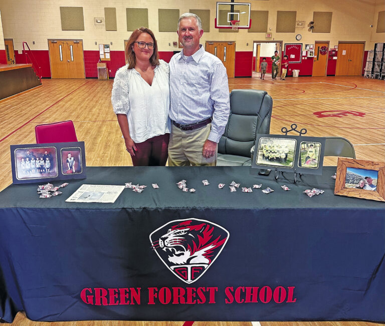 Green Forest School District superintendent David Gilmore and his wife, Jessica, pose for a photo at an open house event in August. Gilmore is in his first year at Green Forest. Photo courtesy of Green Forest School District