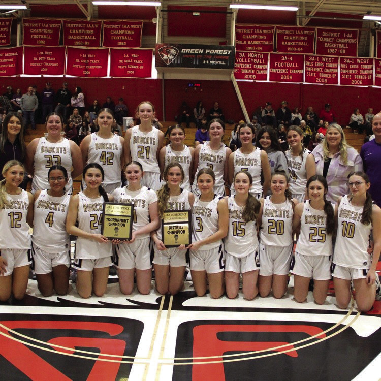 The Berryville Lady Bobcats pose for a team photo after defeating Huntsville in the 4A-1 junior high district tournament on Saturday in Green Forest. Berryville…