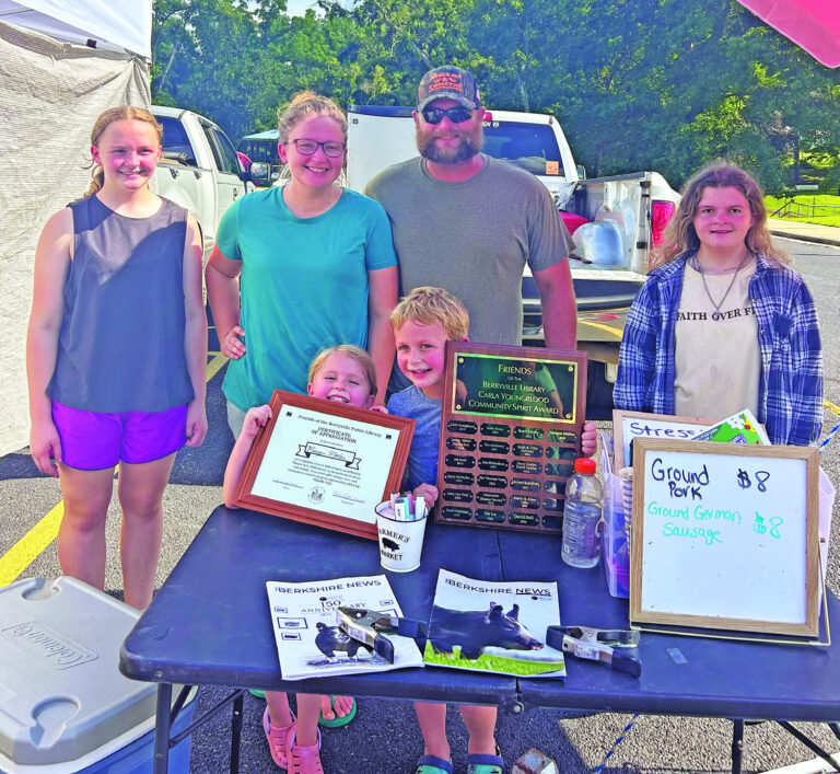 Meagan Morton, pictured with husband Clint and children Allie, Macie, Ben and Anna, was presented with the Carla Youngblood Community Spirit Award on Thursday, July 10, by The Friends of the Berryville Library. Photo courtesy of Friends of the Berryville Library