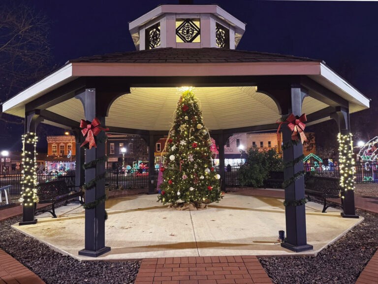 The Christmas tree under the gazebo on the Berryville Public Square is decorated and lit as the holiday season begins. Christmas parades in Carroll County will be held the first weekend in December, beginning with the Eureka Springs Christmas Parade of Lights at 6 p.m. Friday, Dec. 5. The Green Forest Christmas Parade will begin at 10 a.m. Saturday, Dec. 6, with the Berryville Christmas Parade at 6 p.m. Saturday, Dec. 6. Photo courtesy of City of Berryville