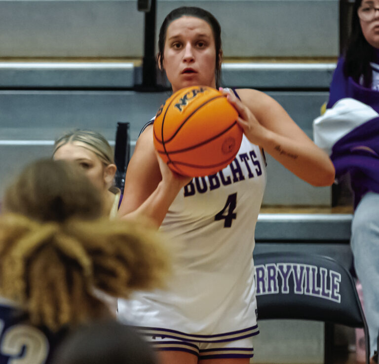 Berryville senior Hailey Howerton gets set to shoot a three-pointer in the second half of the Lady Bobcats’ game against Shiloh Christian on Saturday, Jan. 31, at Bobcat Arena. Charles Chappell / Carroll County News