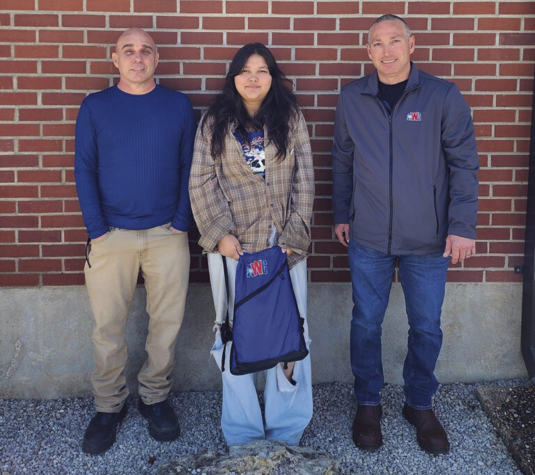 Grace Prentice of Green Forest High School was honored as the senior Student of the Nine Weeks in the afternoon class at the Connect Four Training for the Future program at the Carroll County Career Center in Berryville. She was recognized by AWG (America Welding & Gas). Pictured from left to right are James Knight, Grace Prentice and Jason Demoulin. Photo courtesy of Connect Four