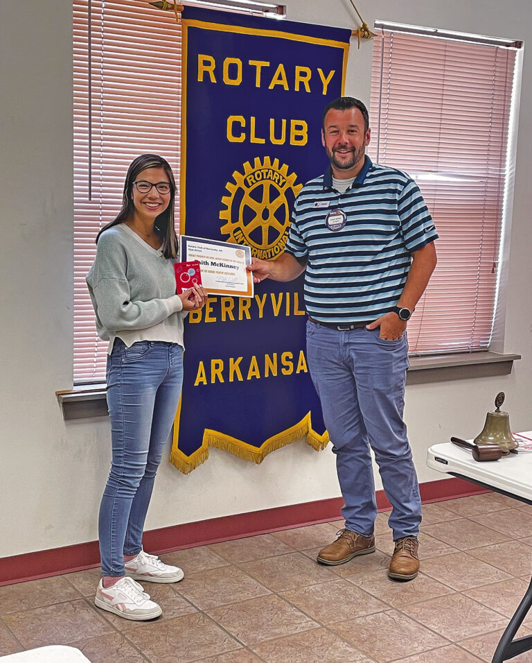 Faith McKinney was honored at the Sept. 3 meeting of the Berryville Rotary Club
