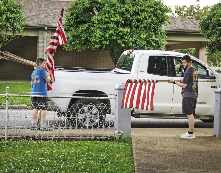 The Berryville Lions Club puts out flags in front of local businesses 12 times a year