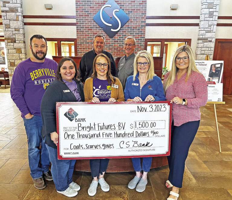 Jason Tennant, president and chief lending officer for CS Bank, recently announced the local bank’s $1,500 charitable donation to the Bright Futures USA