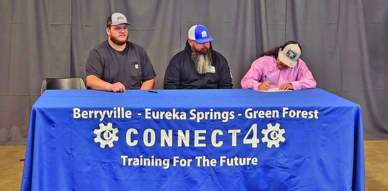 Jeremiah Bottoms (right) of Berryville High School signs with the City of Green Forest Wastewater DepartmentMay 2, 2023 .Read MoreJeremiah Bottoms (right) of Berryville High School signs with the City of Green Forest Wastewater Department